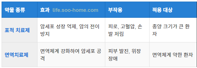 약물 치료는 신장암 1기에서 드물게 사용되지만, 일부 환자에게서 효과를 보일 수 있습니다. 종양이 크거나 수술 전 종양 크기를 줄이고자 할 때 사용하며, 신장암 세포의 성장과 증식을 억제하는 특정 약물들이 활용됩니다.